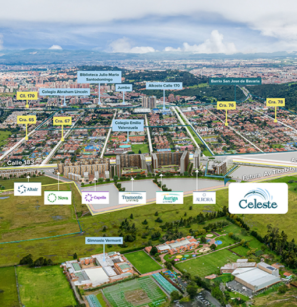 Tramonte ofrece 1.20 km de ciclorutas, 20,331 m² de parques, gimnasios biosaludables, juegos infantiles y extensas zonas verdes. Ubicado cerca de la futura Av. Boyacá, la Calle 183 y la Autopista Norte, Tramonte se encuentra a pocos metros del Centro Comercial Santafé y del Portal de Transmilenio del Norte, garantizando una ubicación privilegiada y excelente conectividad.
