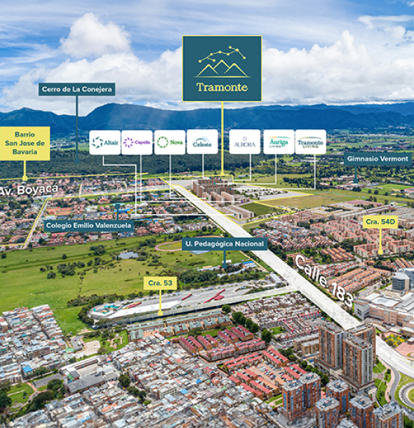 Comienza a vivir tu nuevo estilo de vida en Tramonte, un espectacular Macroproyecto en San José de Bavaria, Bogotá. Este desarrollo contará con 10 manzanas de apartamentos y alamedas comerciales, ofreciendo opciones VIS, VIP y NO VIS, con 7 tipos de apartamentos.